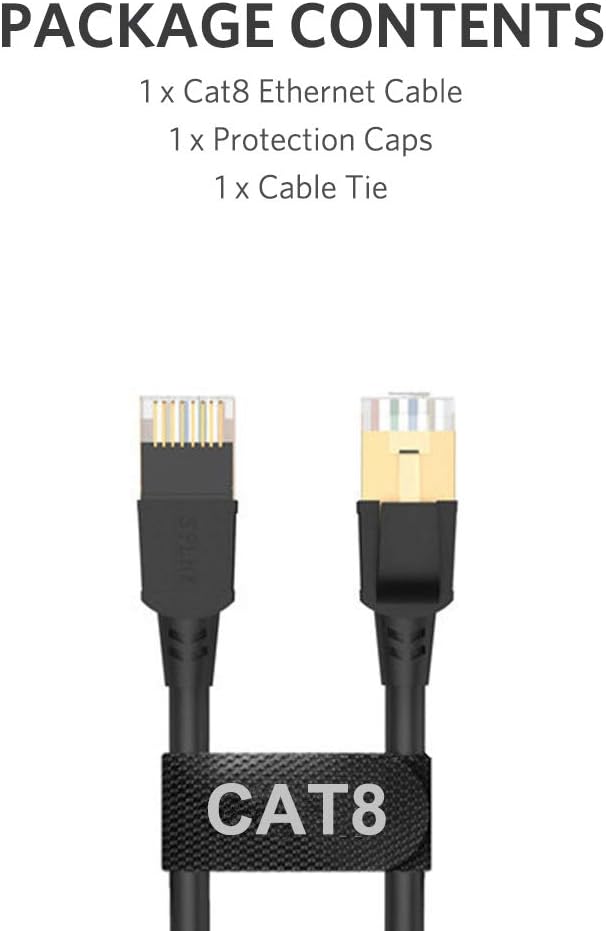 ✔ CLASSIC APPEARANCE DESIGN: Category 8 cable has a maximum channel length of 30m(100ft). Rounded shape and black color design is harmonious with your usage environment, easy to install outdoor and indoor. Package Contents: ATTMONO Cat8 Ethernet Cable, Protection Caps, Cable Tie.