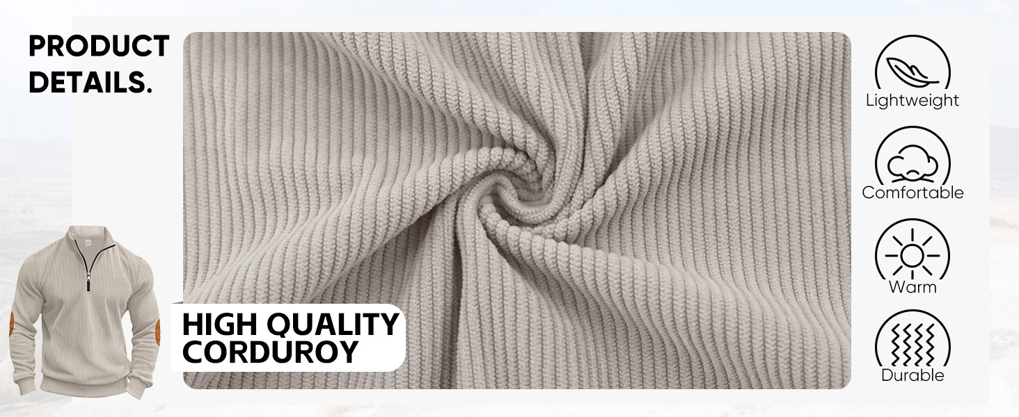 Men’s Quarter Zipper Pullover Corduroy Crew Neck Sweatshirt Casual Knit