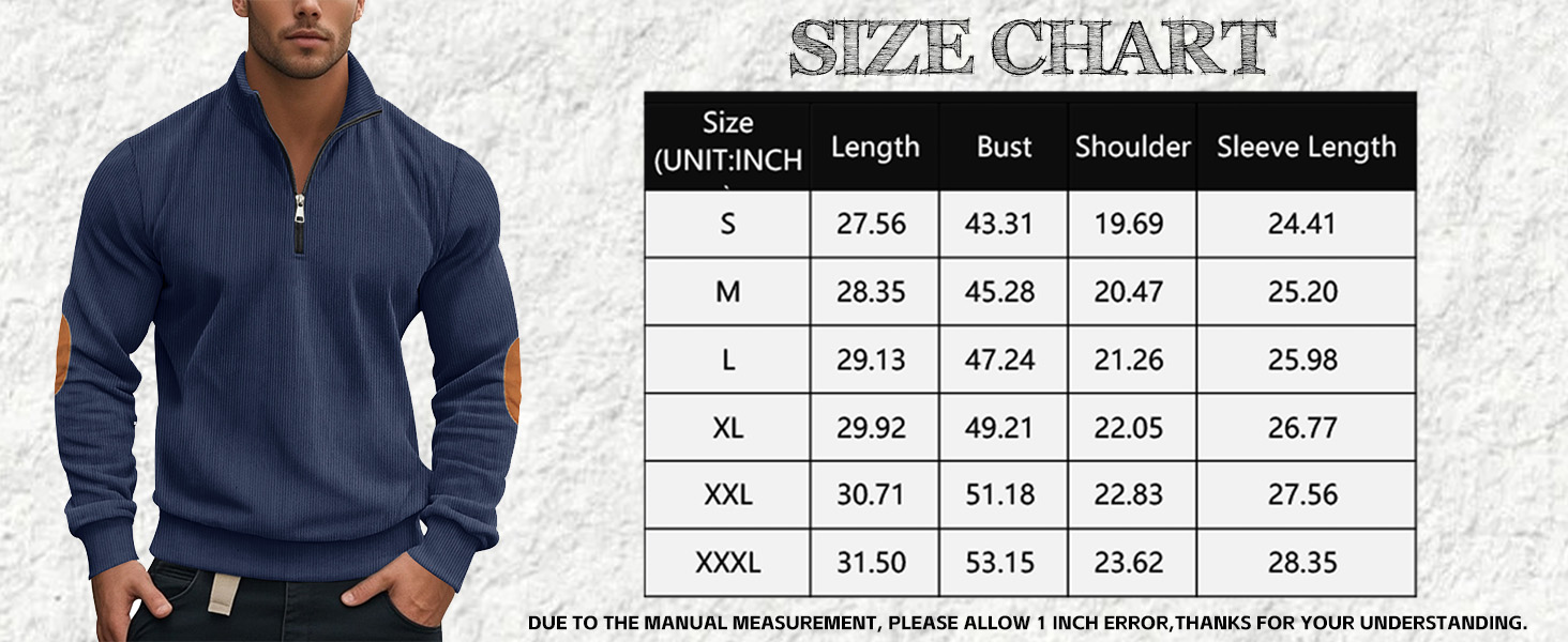 Be the first to review “Men’s Quarter Zipper Pullover Corduroy Crew Neck Sweatshirt Spring Autumn Casual Knit Long Sleeve Polo Shirt”